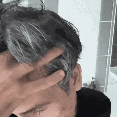2️⃣ Masajea suavemente hasta cubrir completamente las canas.